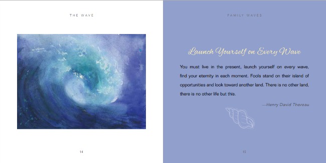 Pages from The Family Wave feature a quote by Henry David Thoreau and artwork by Jane Seymour: